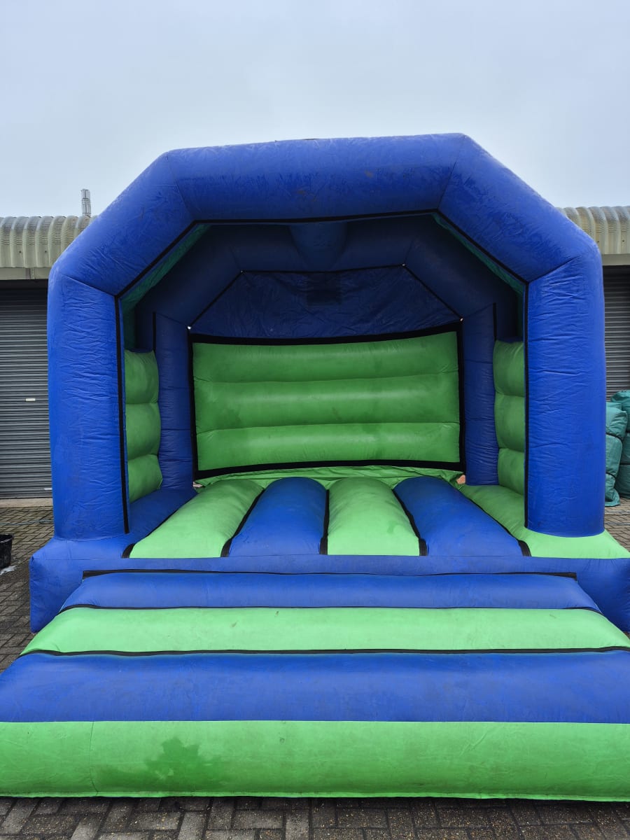 12ft x 12ft Plain Blue and Green Bouncy Castle